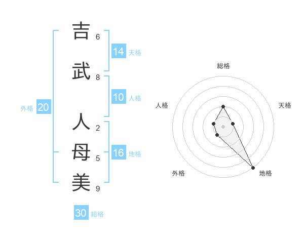 吉武 人母美さんの総格は30画の2点!