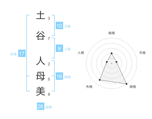土谷 人母美さんの総格は26画の2点!