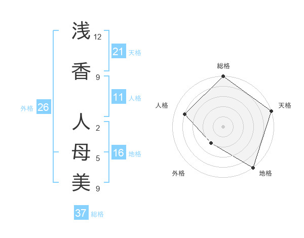 浅香 人母美さんの天格は21画の5点!