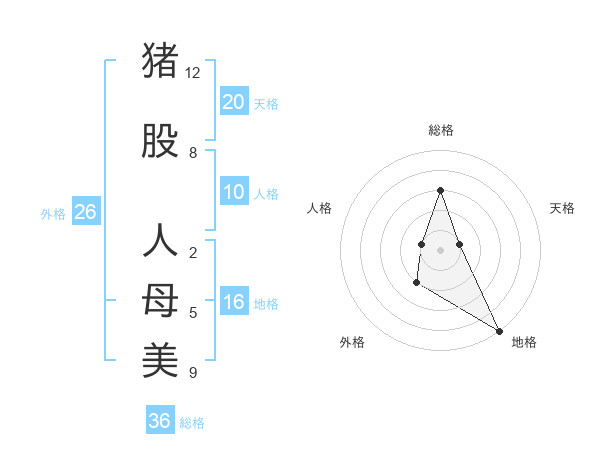 猪股 人母美さんの外格は26画の2点!