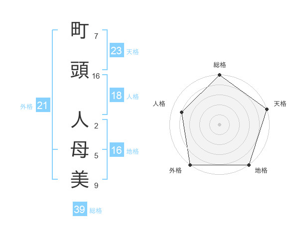 町頭 人母美さんを姓名の画数から五運を鑑定