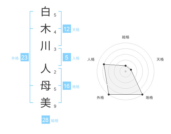 白木川 人母美さんの外格は23画の5点!