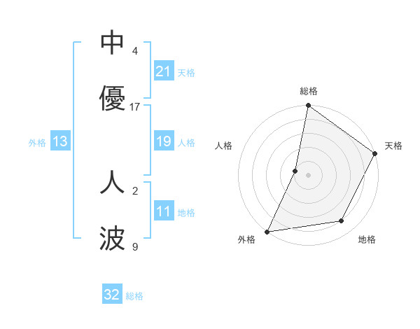 性格や才能などを表す2番目に重要な運勢です。人間関係や協調性、社会的な成功に影響します。主に20歳から50歳ぐらいまでの中年期の運勢を表します。