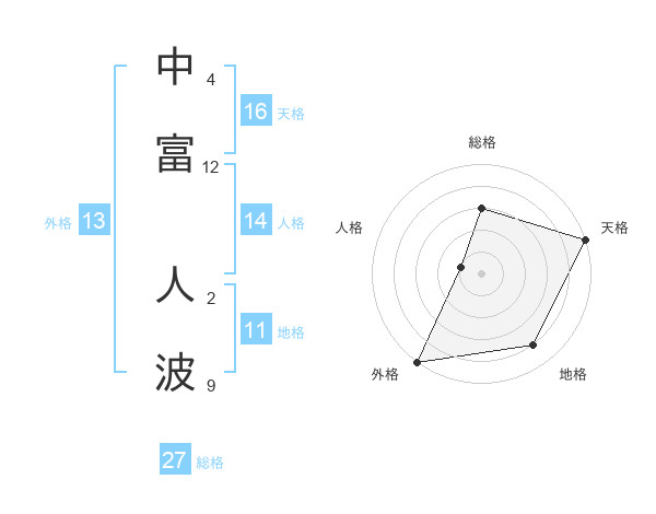 中富 人波さんの外格は13画の5点!