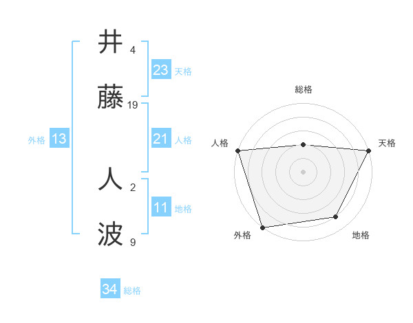 井藤 人波さんの外格は13画の5点!