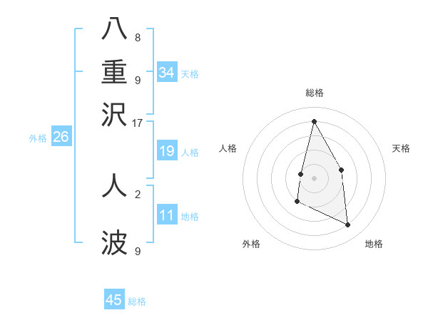 八重沢 人波さんを姓名の画数から五運を鑑定