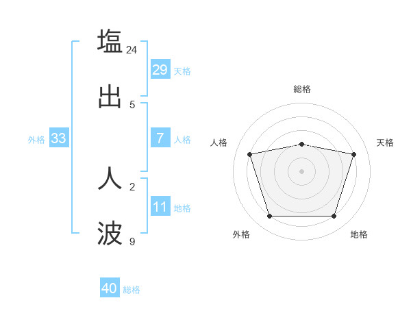 塩出 人波さんの外格は33画の4点!