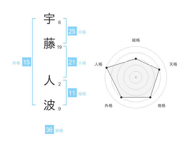 宇藤 人波さんを姓名の画数から五運を鑑定