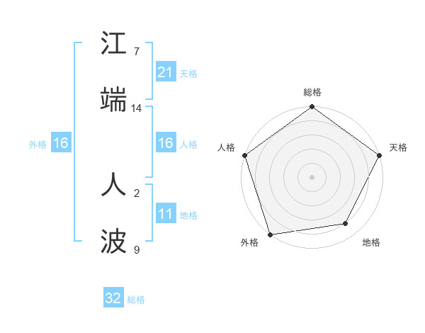 江端 人波さんの外格は16画の5点!