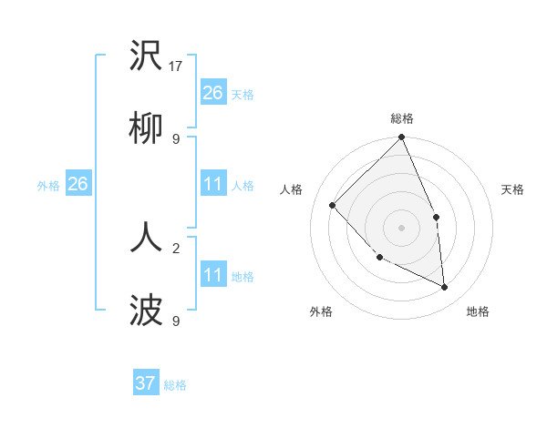沢柳 人波さんの天格は26画の2点!