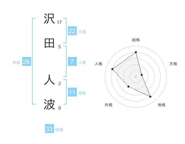 沢田 人波さんの天格は22画の1点!