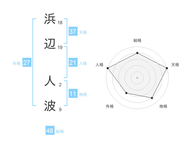 浜辺 人波さんの天格は37画の5点!