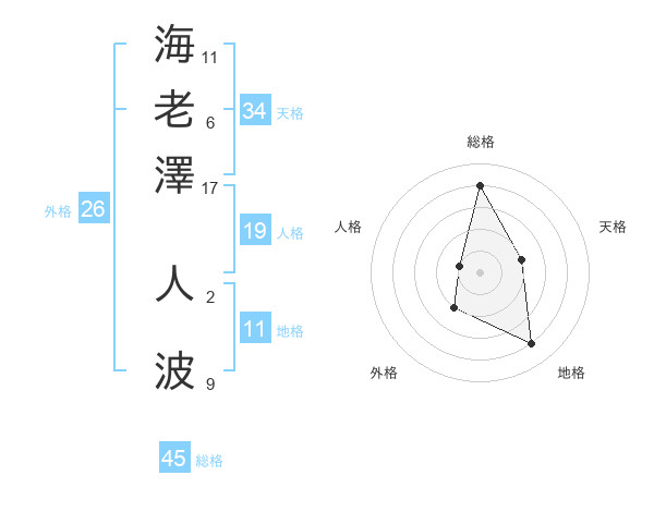 海老澤 人波さんを姓名の画数から五運を鑑定