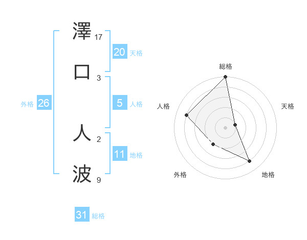 澤口 人波さんの総格は31画の5点!