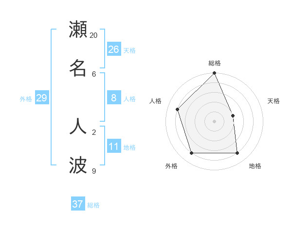 瀬名 人波さんを姓名の画数から五運を鑑定
