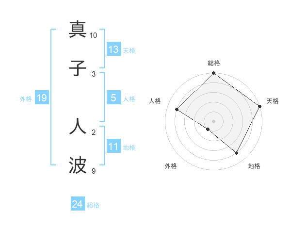 真子 人波さんの天格は13画の5点!