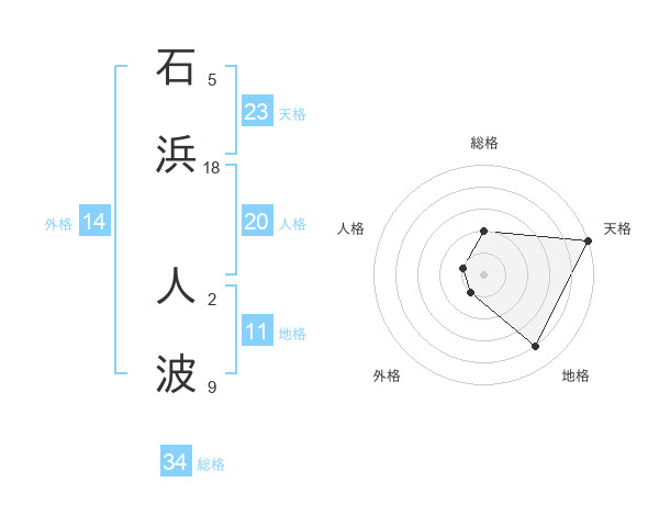 石浜 人波さんの天格は23画の5点!