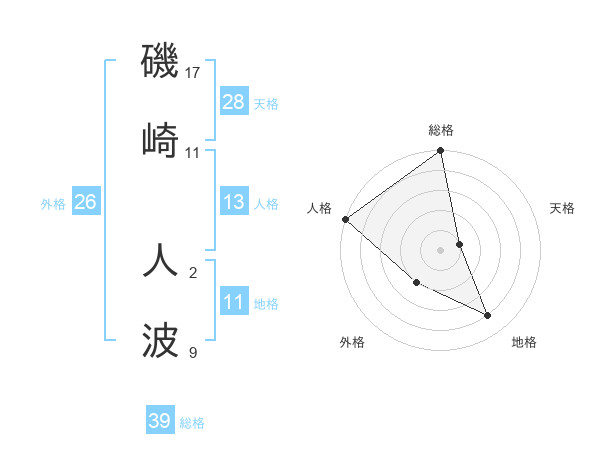 磯崎 人波さんの総格は39画の5点!