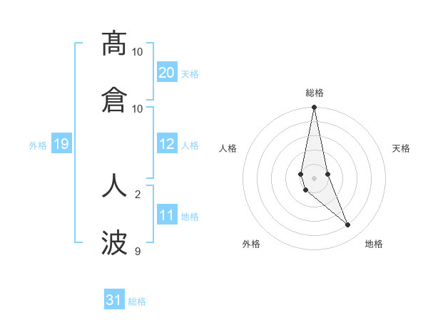 髙倉 人波さんの総格は31画の5点!