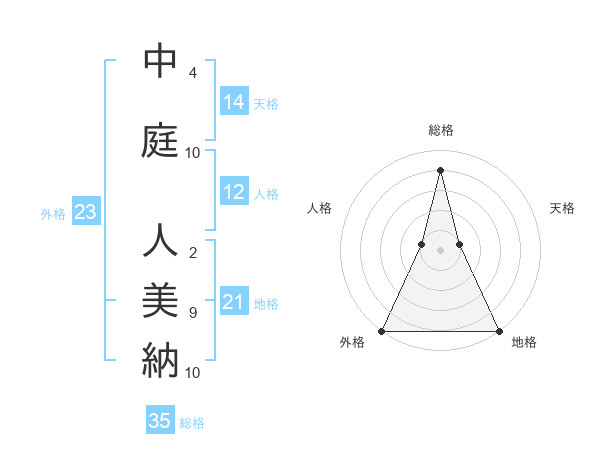 中庭 人美納さんを姓名の画数から五運を鑑定