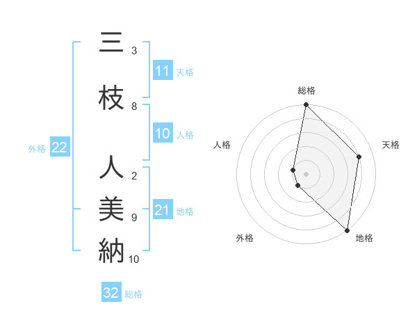 三枝 人美納さんの総格は32画の5点!