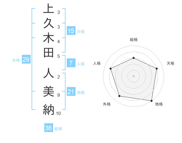上久木田 人美納さんの天格は15画の4点!
