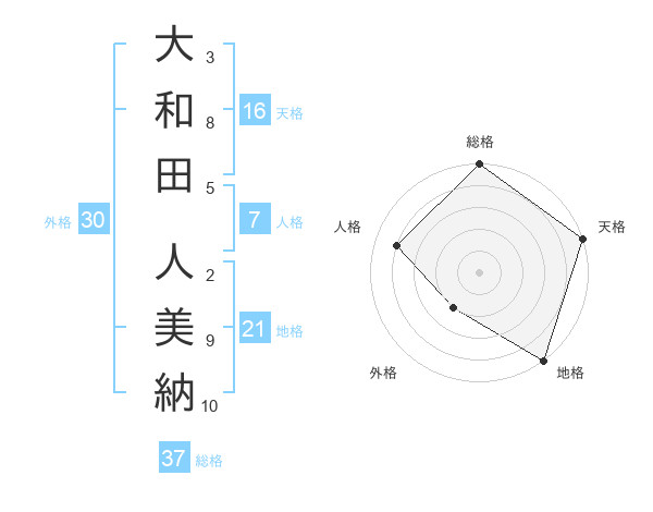 大和田 人美納さんを姓名の画数から五運を鑑定