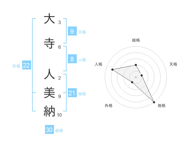 大寺 人美納さんの総格は30画の2点!