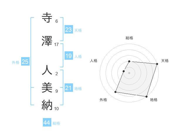 寺澤 人美納さんを姓名の画数から五運を鑑定