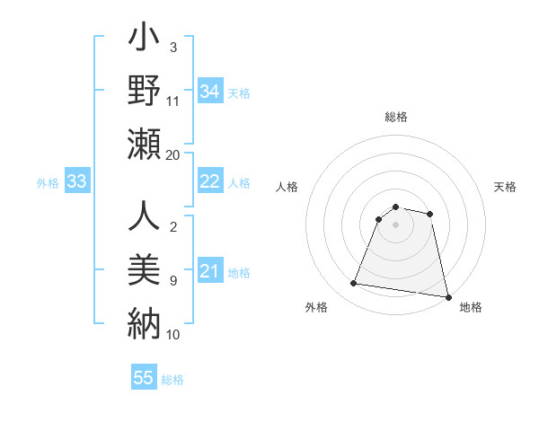 小野瀬 人美納さんの総格は55画の1点!