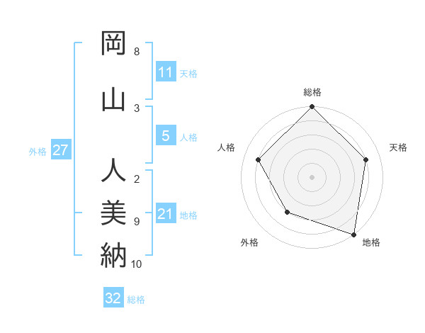 岡山 人美納さんの総格は32画の5点!