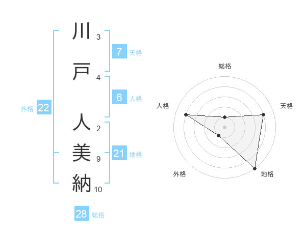 川戸 人美納さんの総格は28画の1点!