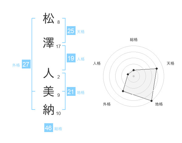 松澤 人美納さんを姓名の画数から五運を鑑定