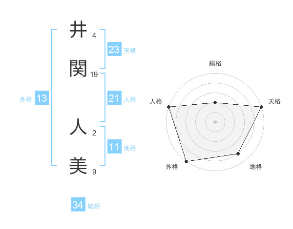 井関 人美さんの総格は34画の2点!