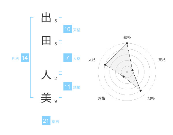 出田 人美さんの総格は21画の5点!