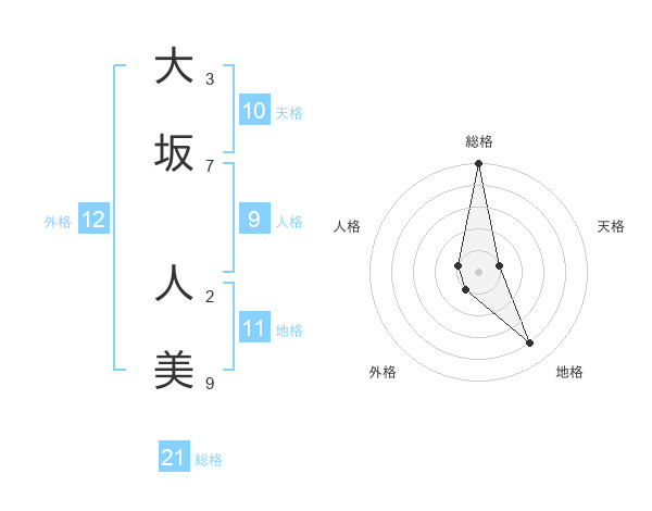 大坂 人美さんの総格は21画の5点!
