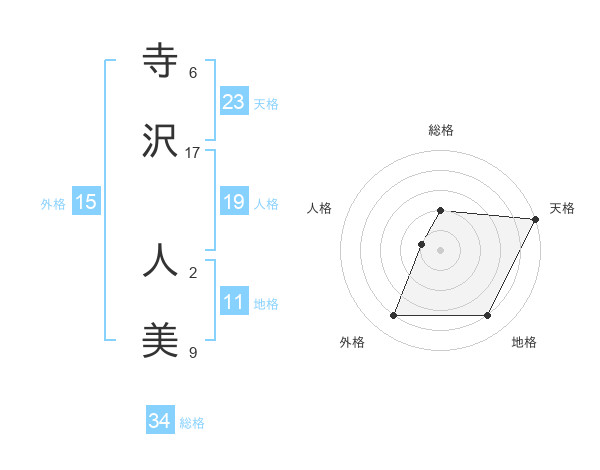 寺沢 人美さんを姓名の画数から五運を鑑定