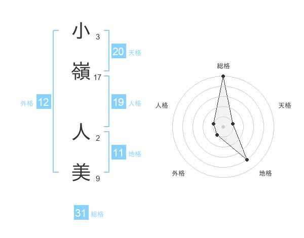 小嶺 人美さんを姓名の画数から五運を鑑定