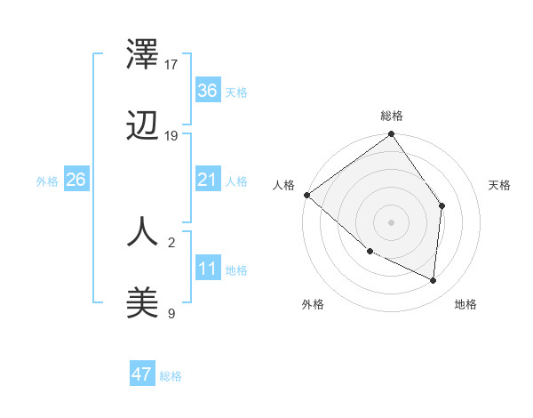 澤辺 人美さんの総格は47画の5点!