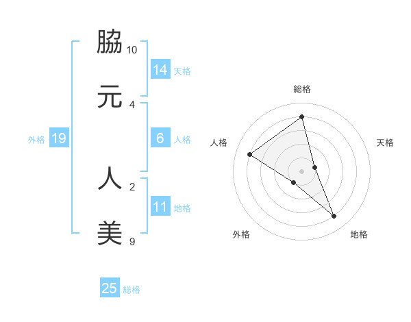 脇元 人美さんの総格は25画の4点!