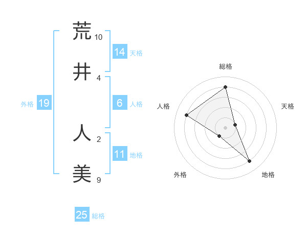 荒井 人美さんの総格は25画の4点!