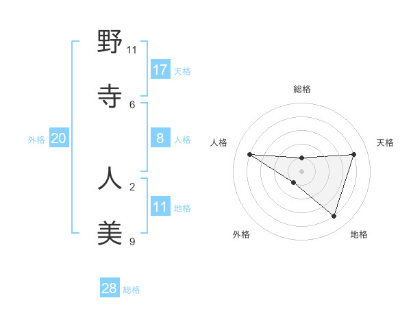 野寺 人美さんを姓名の画数から五運を鑑定