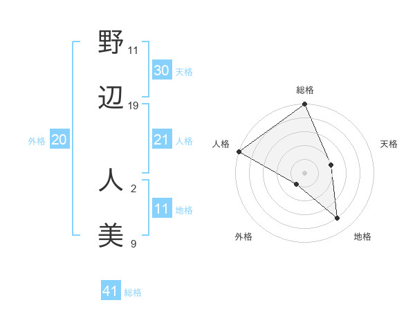野辺 人美さんの総格は41画の5点!