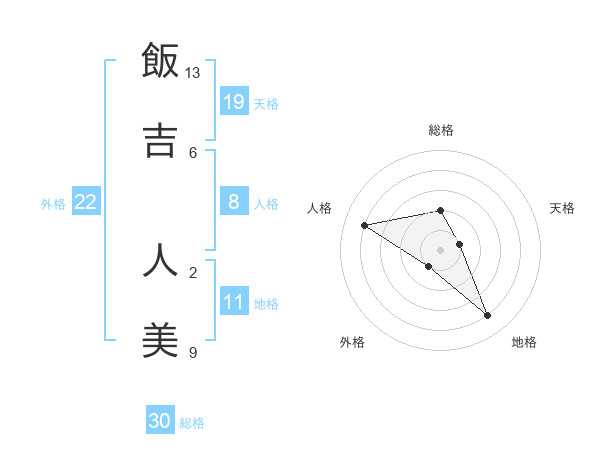 飯吉 人美さんの総格は30画の2点!
