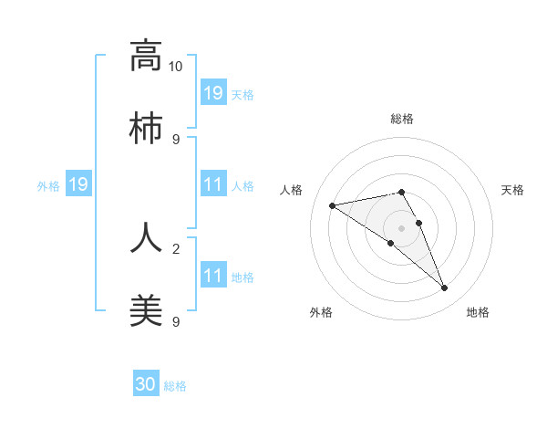 高柿 人美さんの総格は30画の2点!