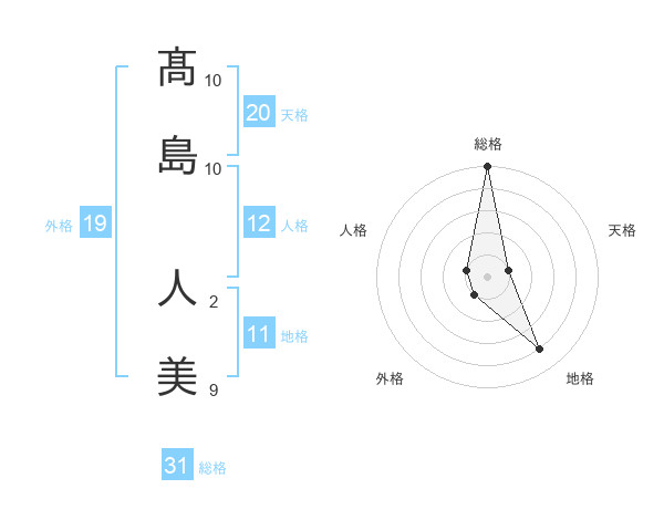 髙島 人美さんの総格は31画の5点!