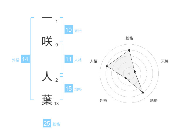 一咲 人葉さんの総格は25画の4点!