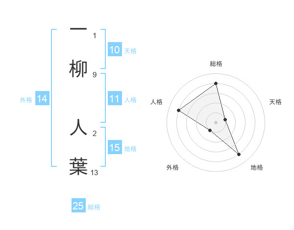 一柳 人葉さんを姓名の画数から五運を鑑定