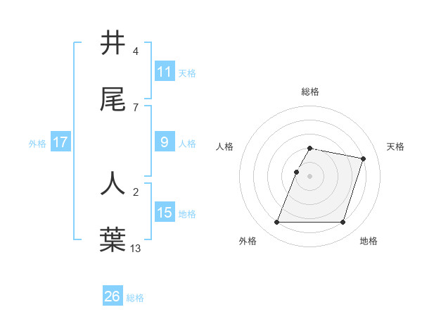 井尾 人葉さんを姓名の画数から五運を鑑定