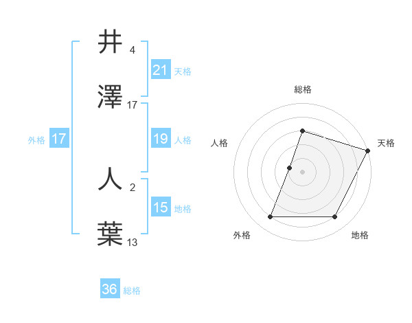 井澤 人葉さんを姓名の画数から五運を鑑定